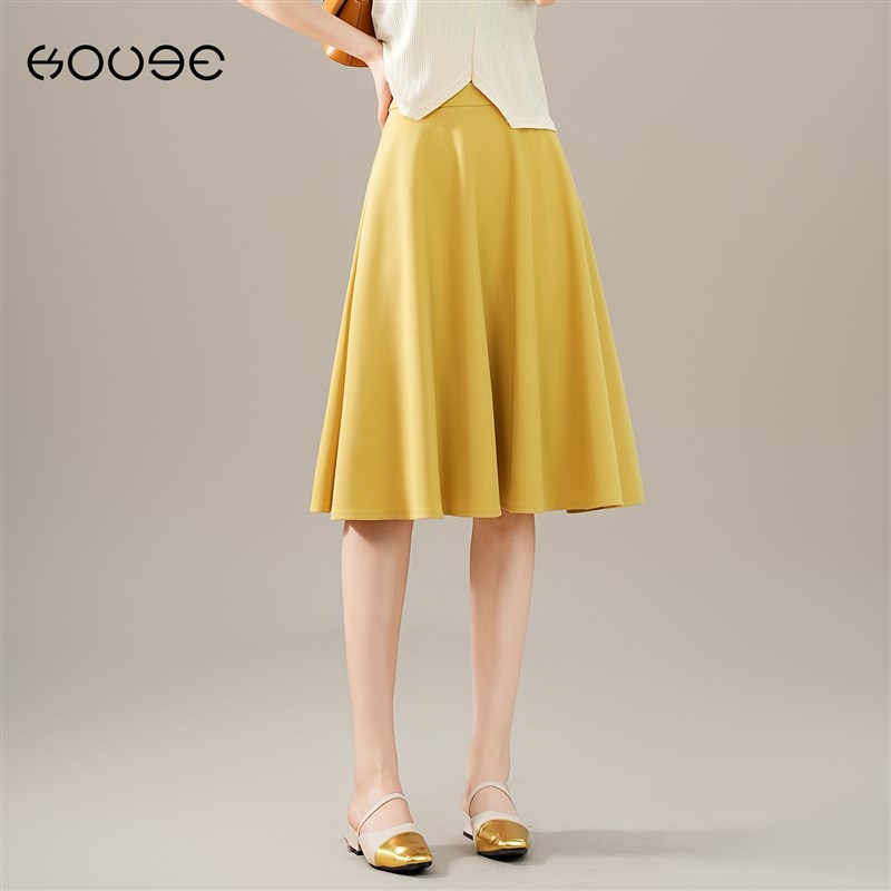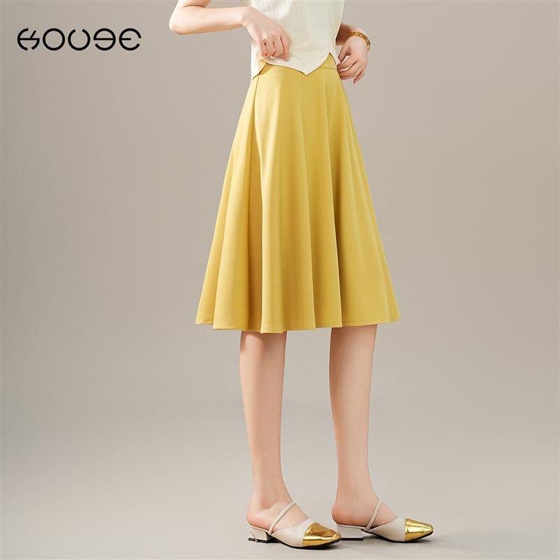 小个子半身裙女高腰夏季2025新款a字版大摆职业中裙黄色西装伞裙