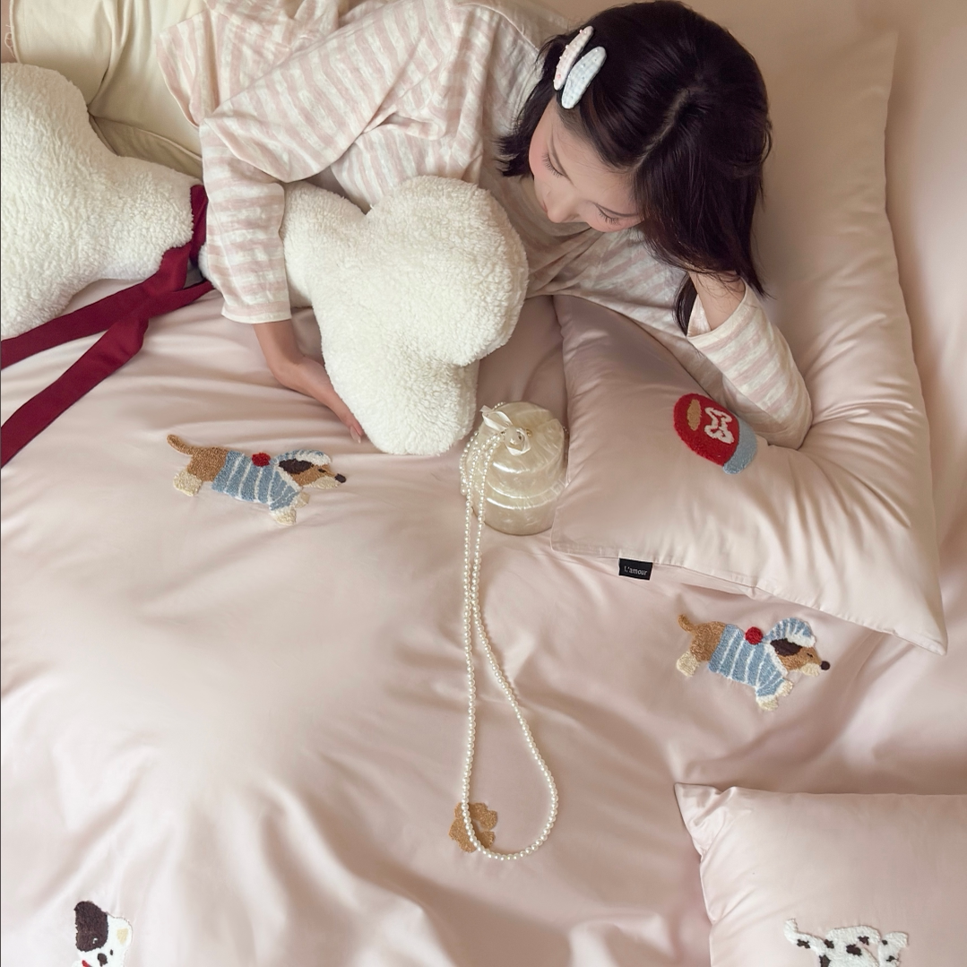 小清新可爱小狗100支全棉四件套