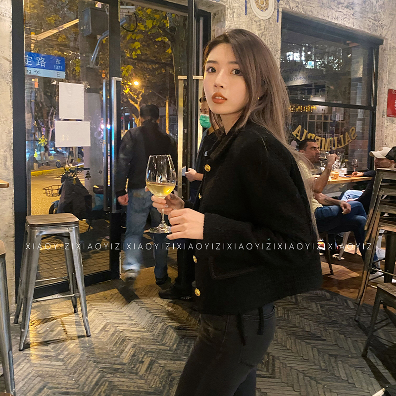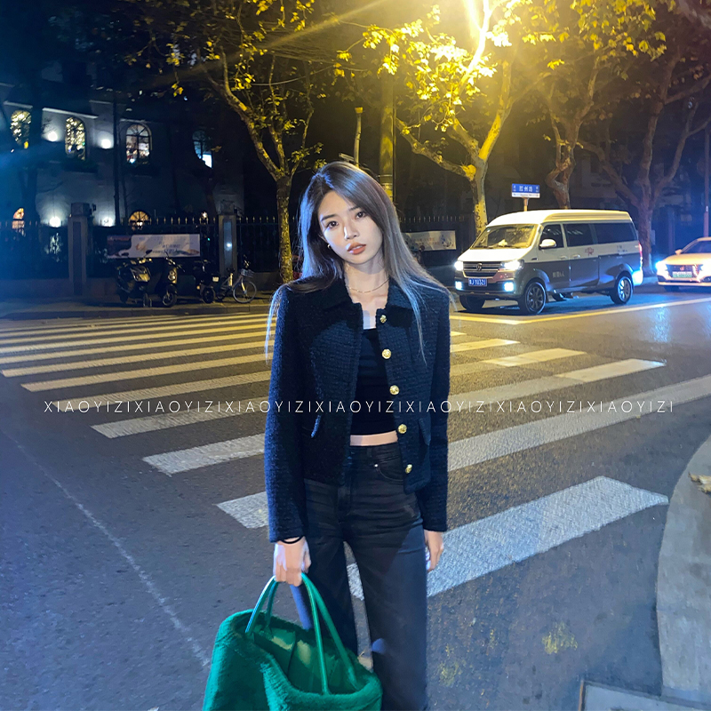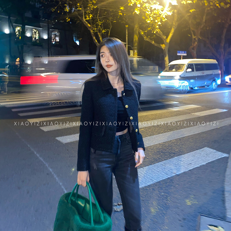经典永存 黑色短款小香风外套女 2025新款羊毛粗花呢小个子上衣