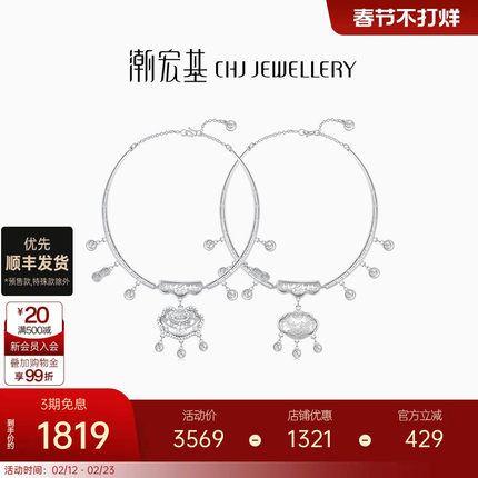 潮宏基好事发生足银项圈长命富贵