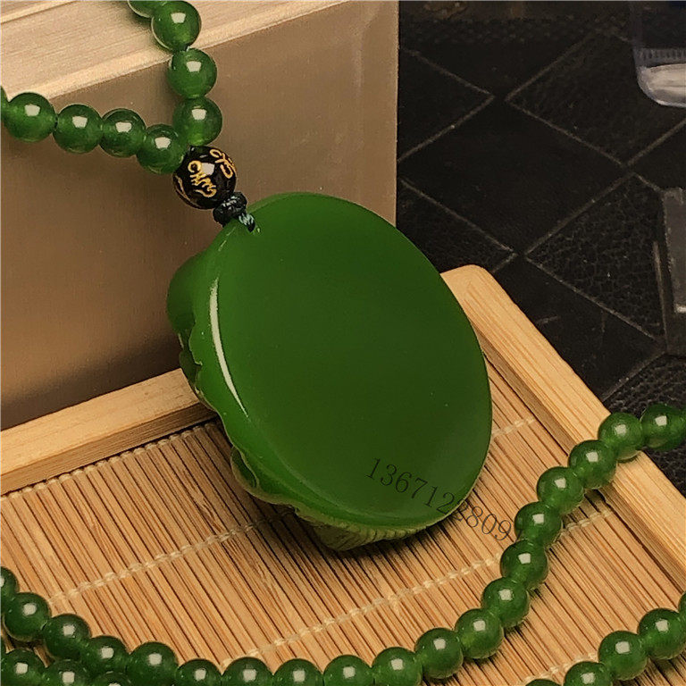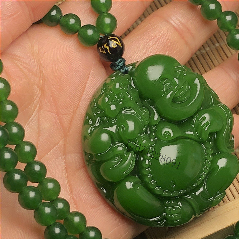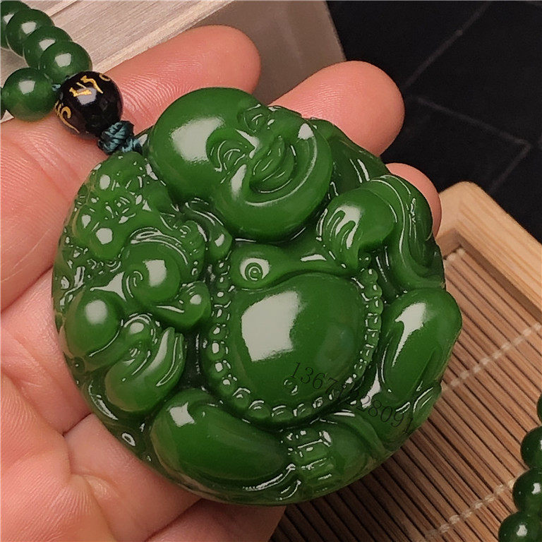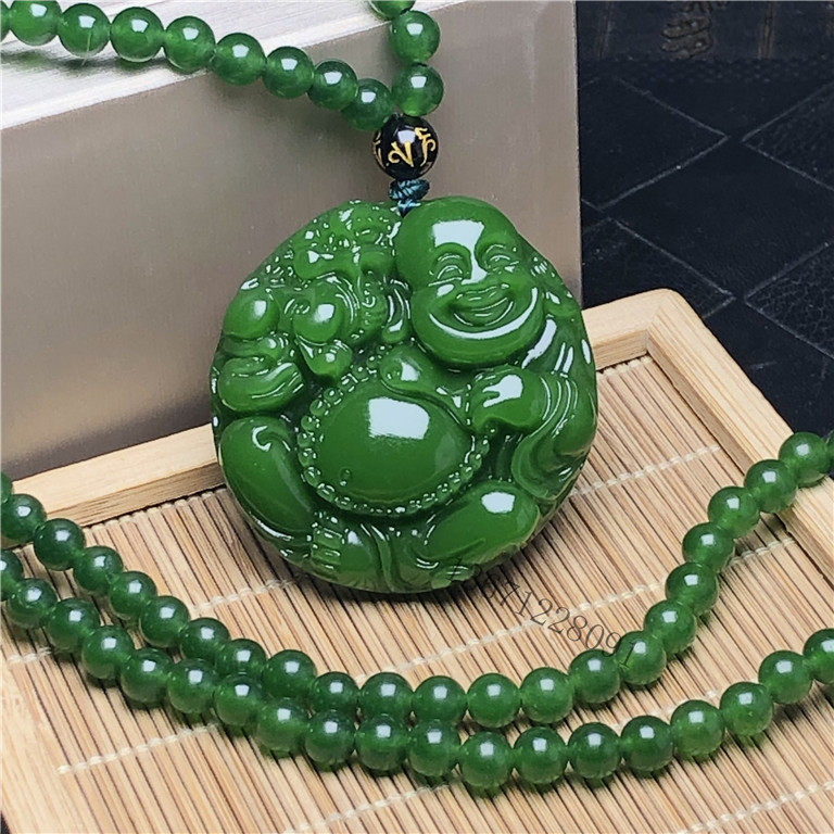 天然籽料原石新疆和田玉菠菜绿碧玉笑佛玉吊坠挂件玉佩赠碧玉项链