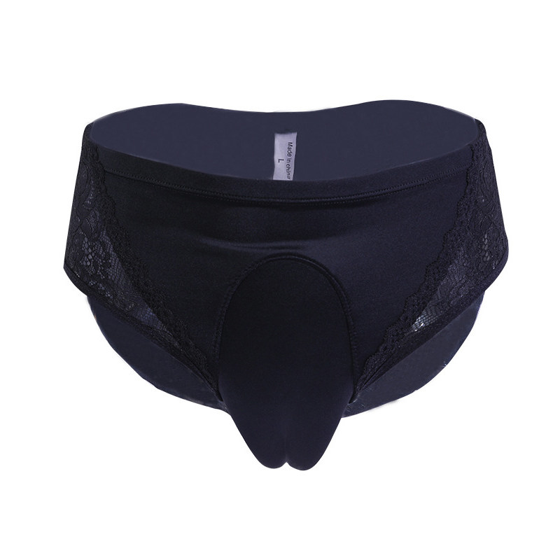 蕾丝拼接性感伪娘内裤男扮女变装cd紧身裤骆驼趾丰阴假阴鲍鱼T裤