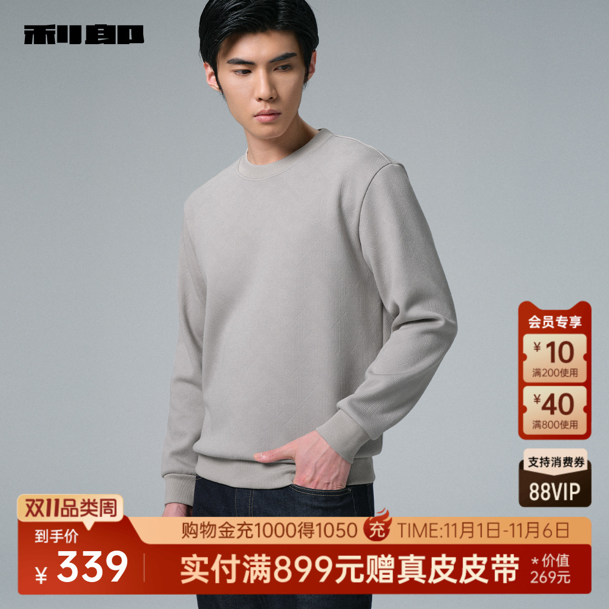 【含莫代尔/加绒】利郎官方 卫衣男2025冬季休闲男装保暖T恤上衣