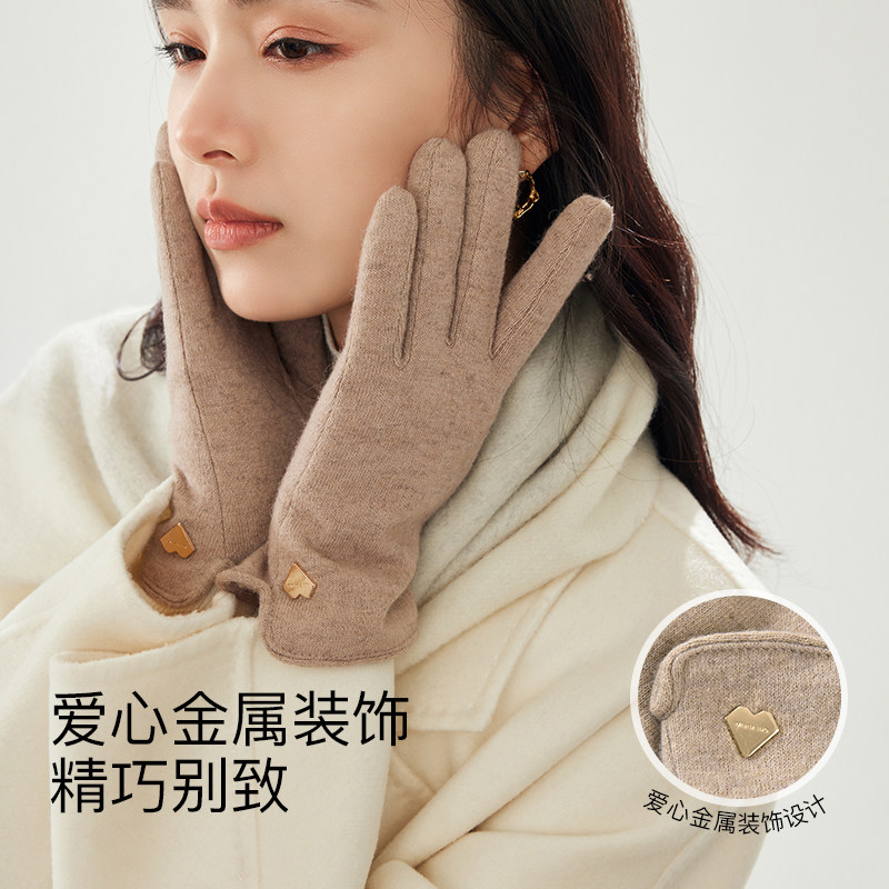siggi 羊毛手套女冬季加绒加厚保暖触屏分指手套骑行开车防寒手套