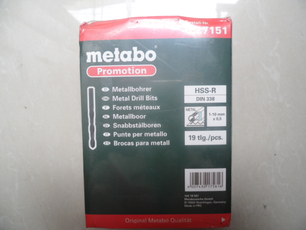 德国麦太保METABO HSS-R 高速钢麻花钻头19根套装 627151000