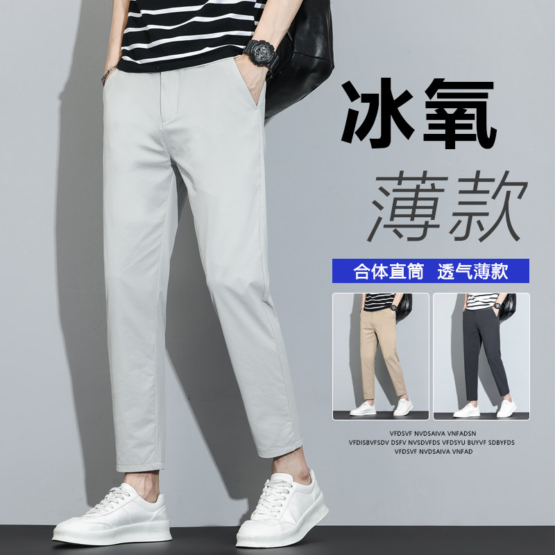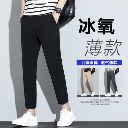 2026新裤子男生九分裤修身锥形小直筒休闲裤9分冰丝薄款夏季透气