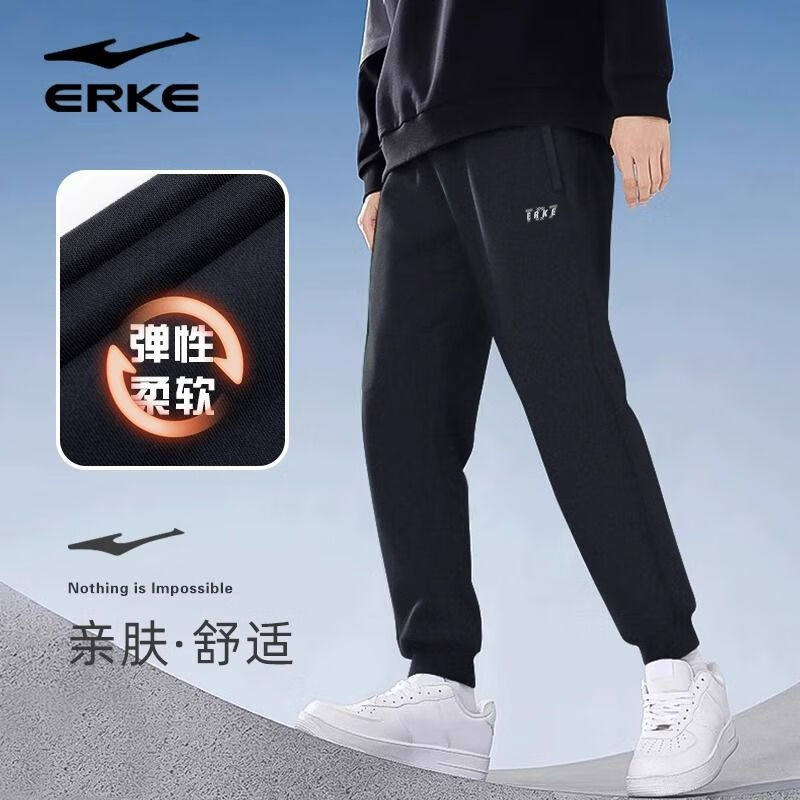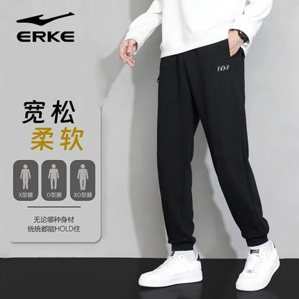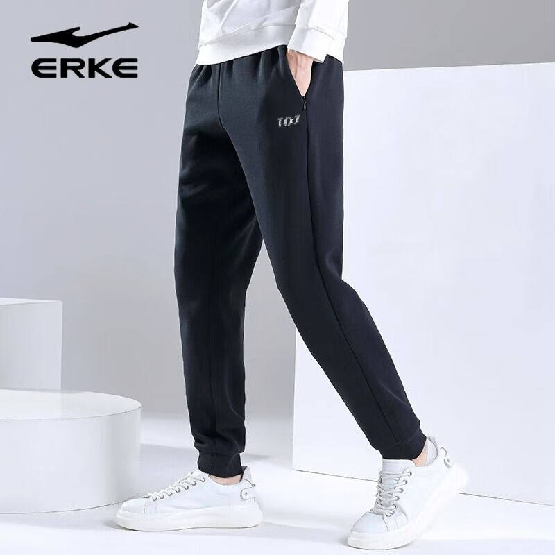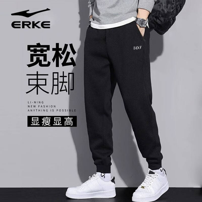 鸿星尔克运动长裤男2026冬季新款保暖防风针织九分裤综合训练裤男