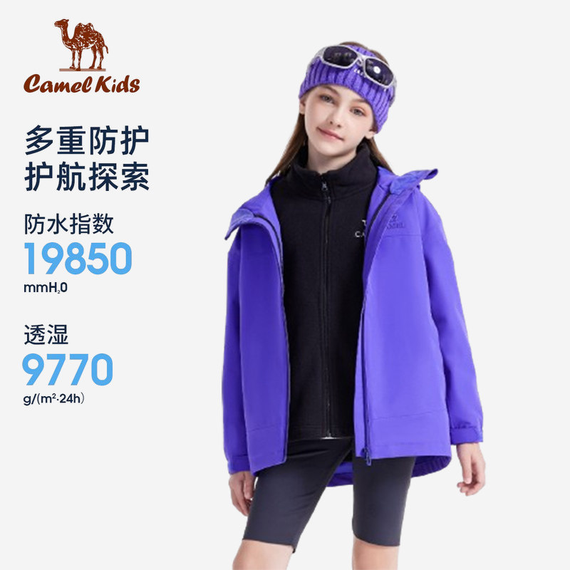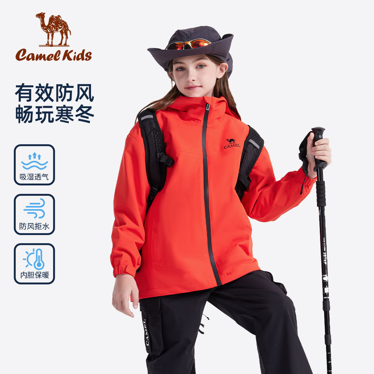 小骆驼儿童冲锋衣秋冬季2025新款户外防风防水大童登山服男童外套