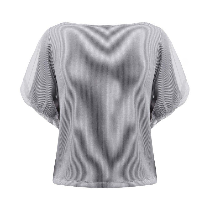【秒杀】sdeer圣迪奥女装秋圆领肌理交叉网纱垂坠短袖S223Z0102