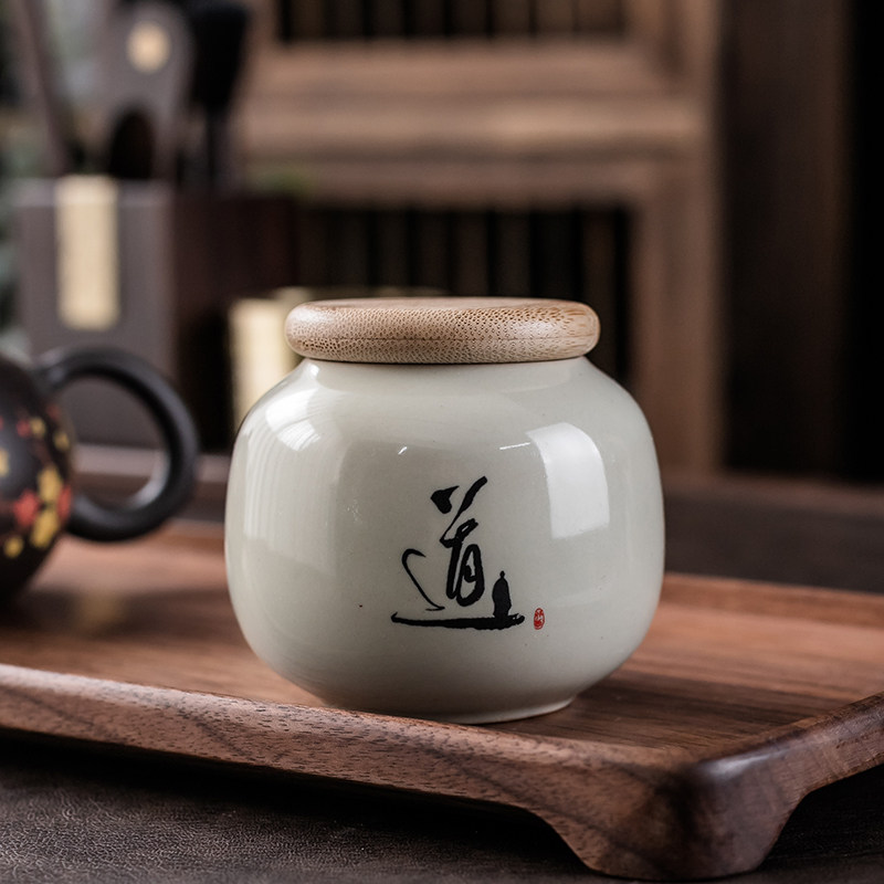 茶叶罐密封罐陶瓷罐家用便携小茶罐茶叶包装盒茶缸防潮茶仓中式