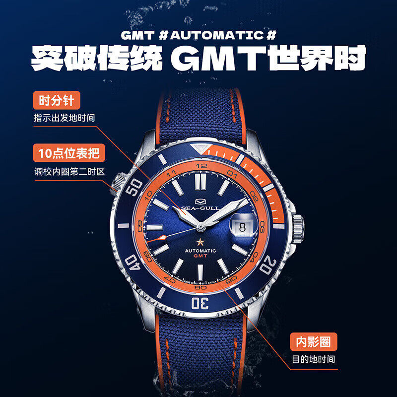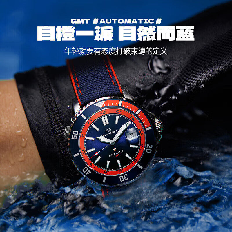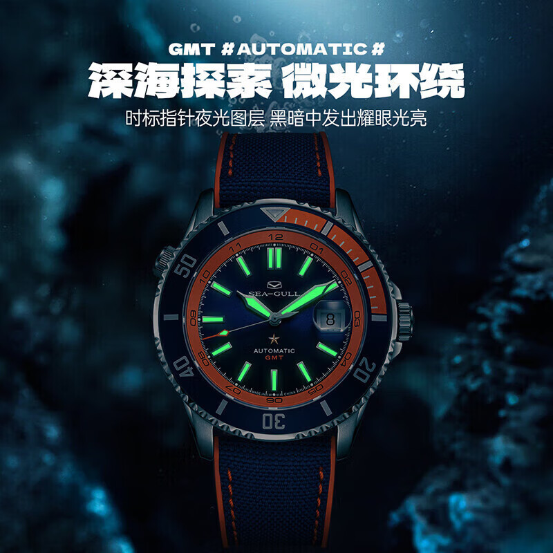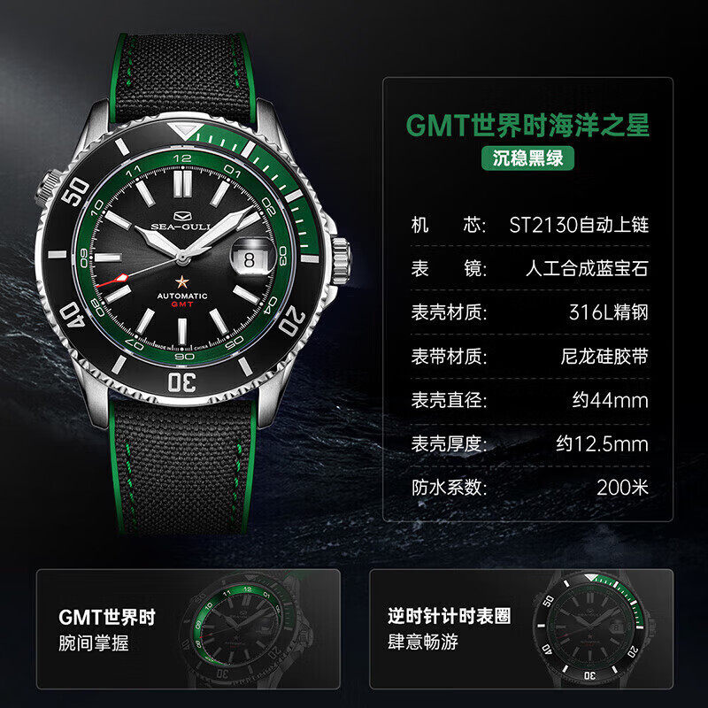 海鸥表男士自动机械表男表海洋系列GMT 200米防水腕表潜水表6154