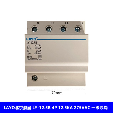 LAYO一级浪涌保护器LY-12.5B 12.5KA 275V防雷器避雷器4P 12.5KA