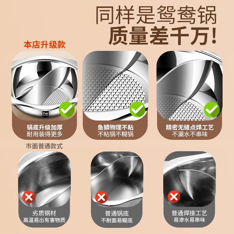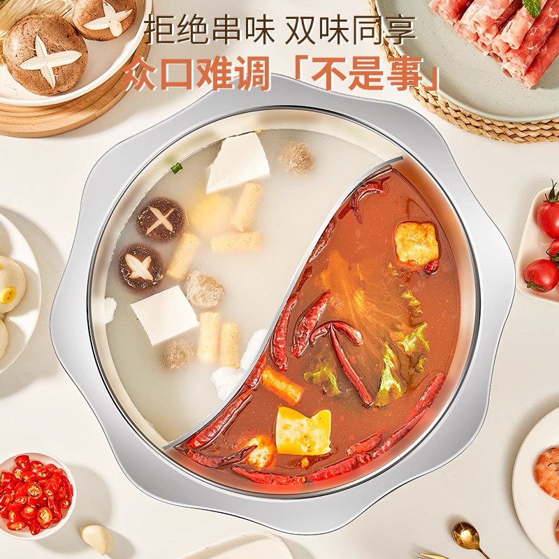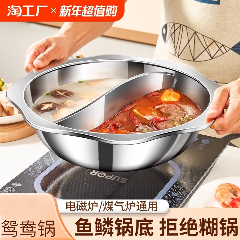 不锈钢火锅家用锅电磁炉汤锅专用锅商用鸳鸯锅火锅盆清汤锅加热