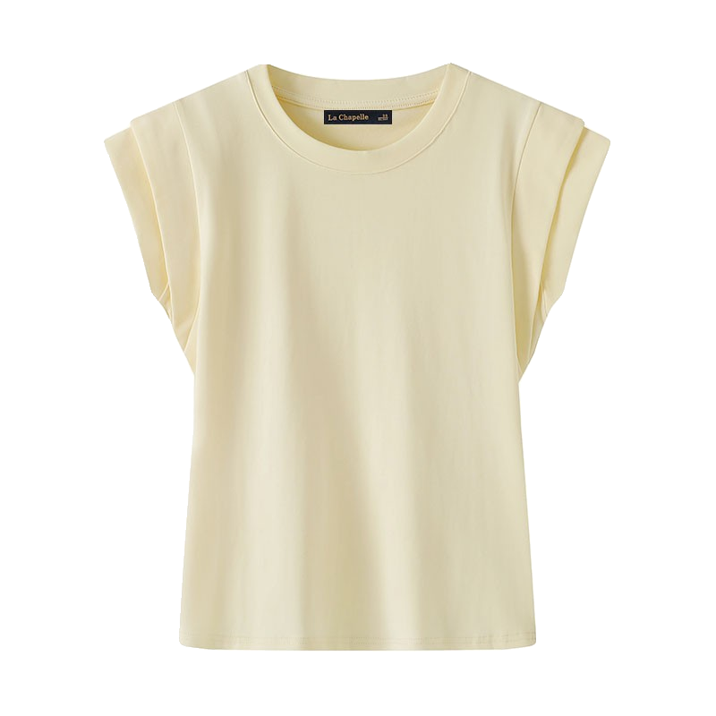 拉夏贝尔/La Chapelle夏季圆领修身飞飞袖T恤女纯色打底背心上衣