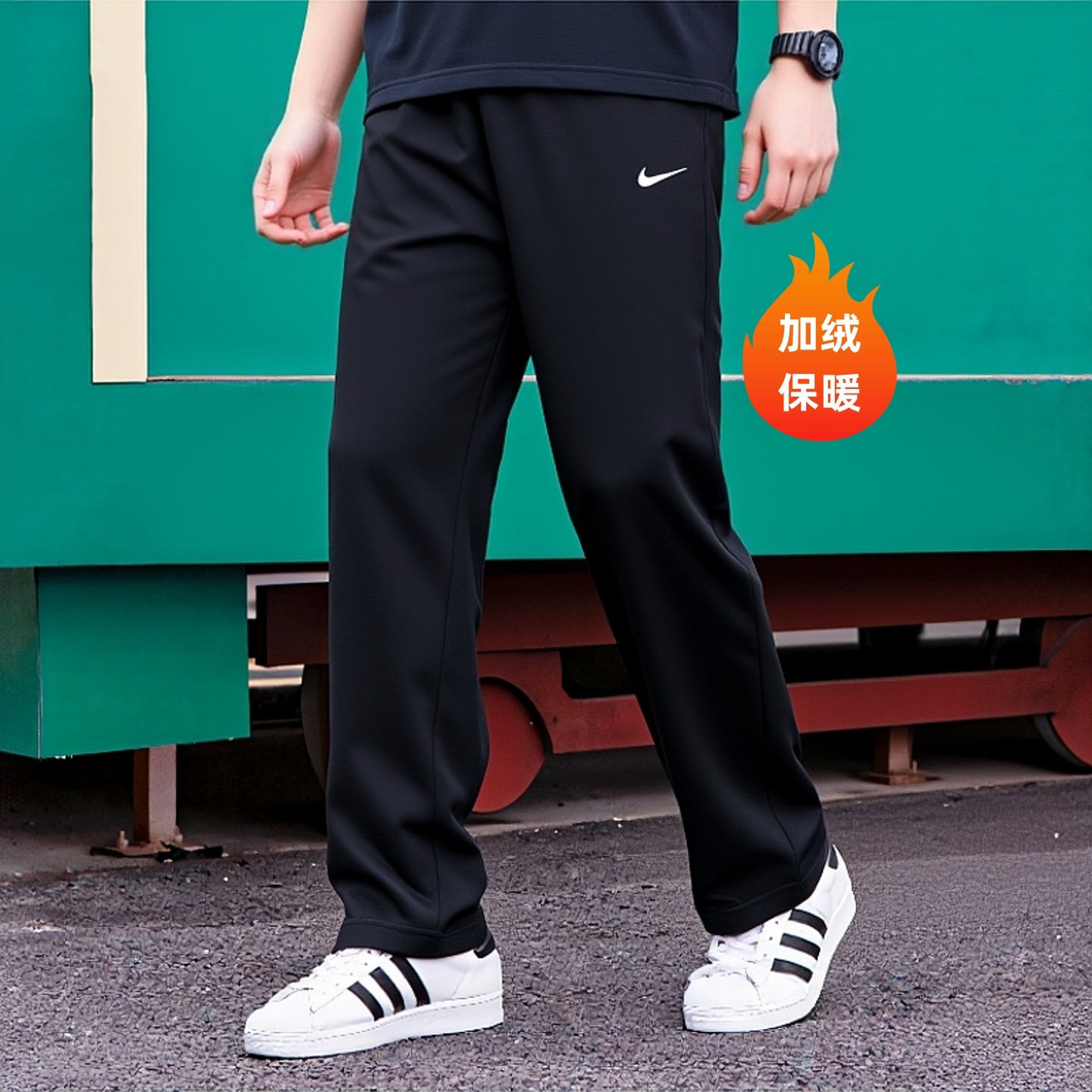 Nike耐克裤子黑色加绒长裤冬季新款男裤针织保暖运动裤宽松直筒裤