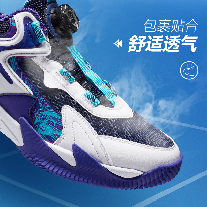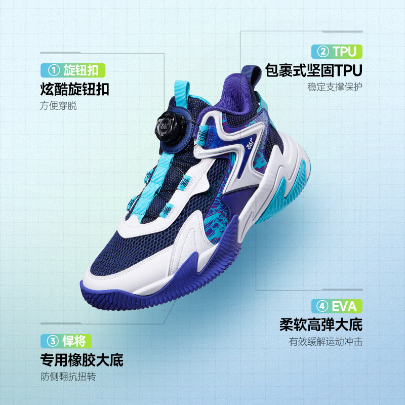 361度童鞋儿童旋钮扣篮球鞋2025夏季大网孔透气男童运动鞋水泥地