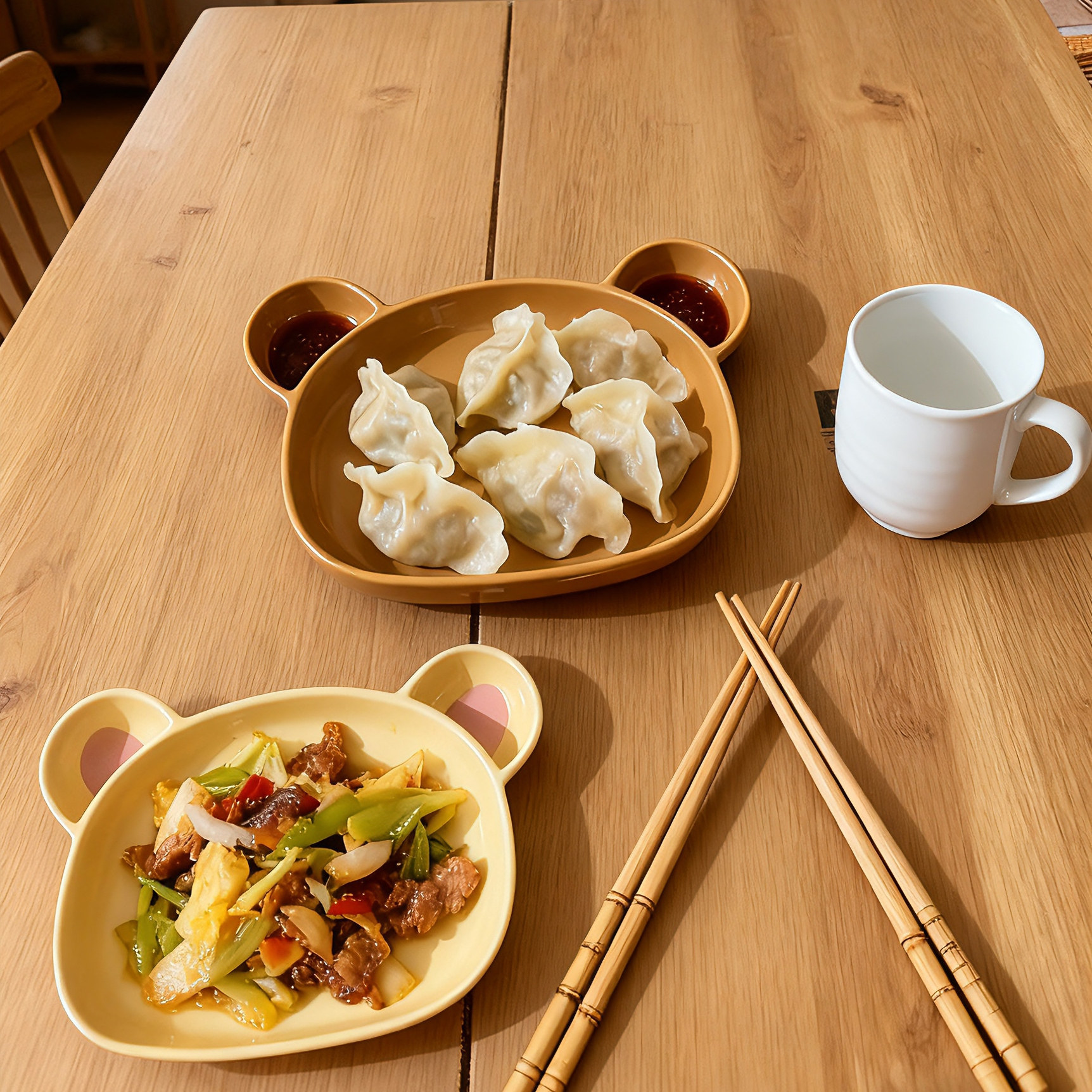 轻松熊餐具小熊陶瓷碗吃饭碗#儿童成人时尚可爱小众轻奢餐具暖黄