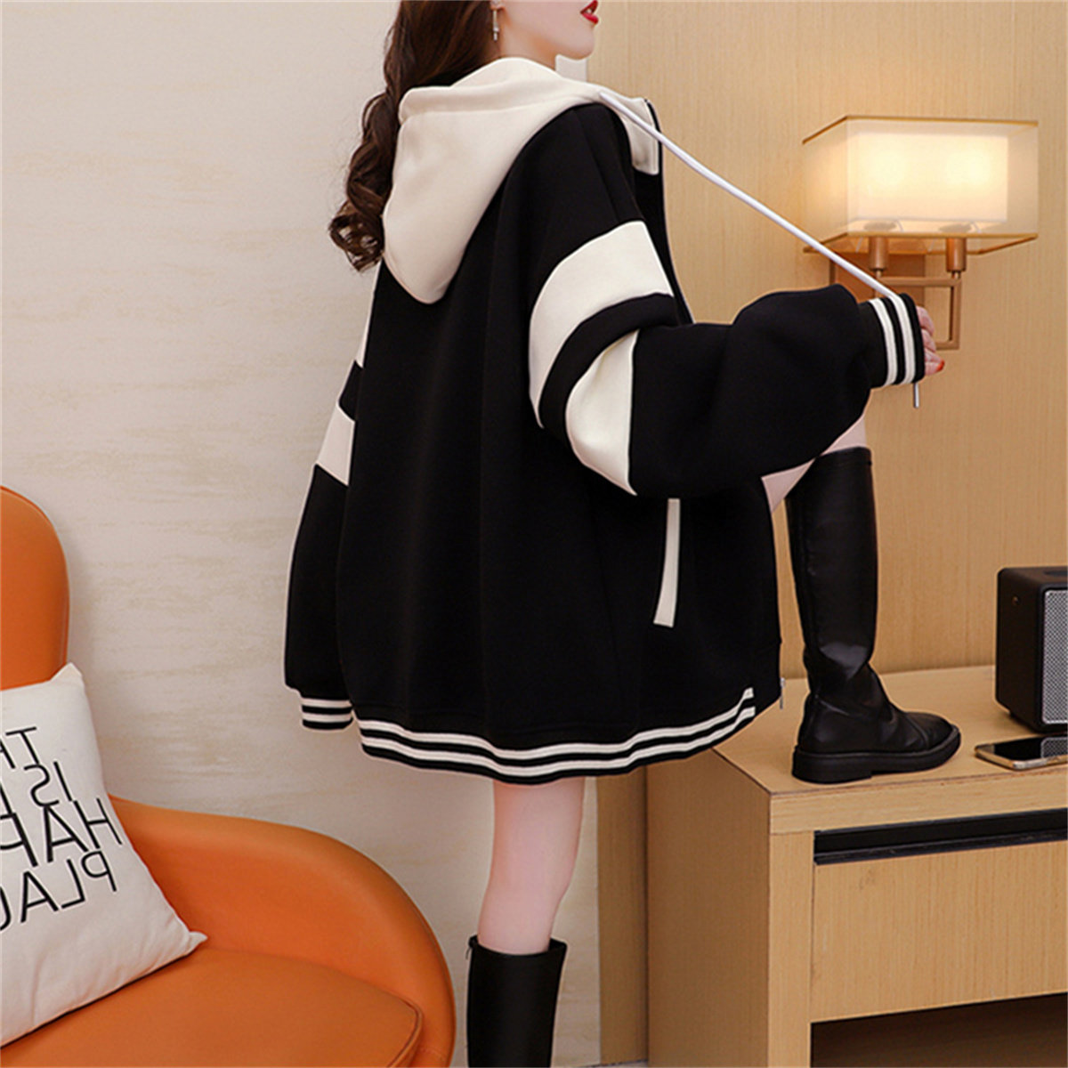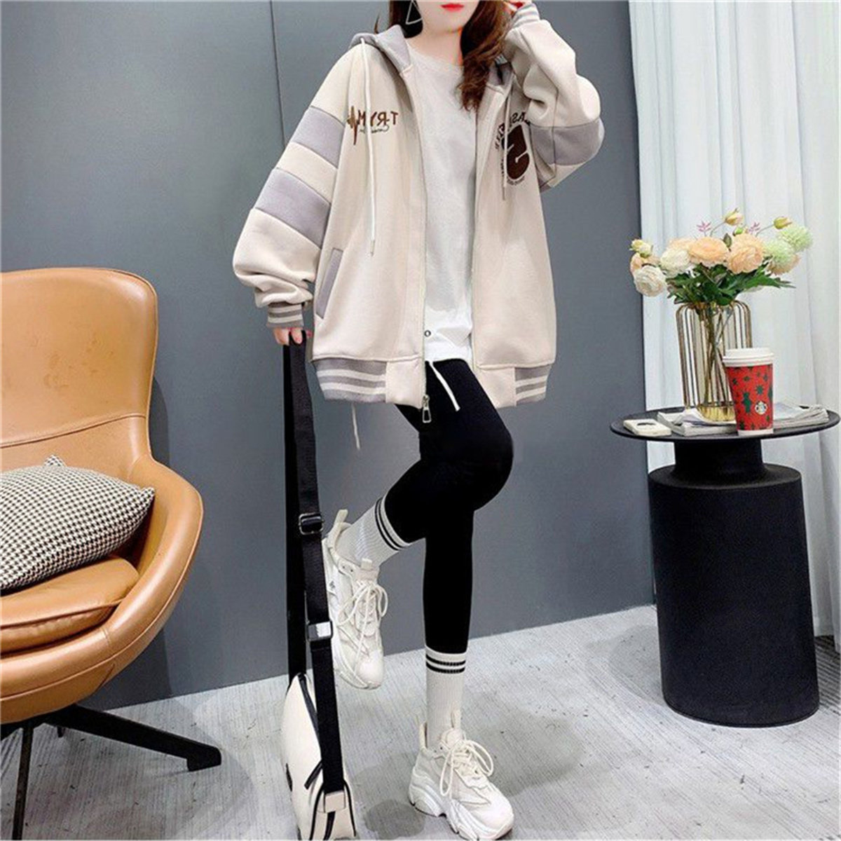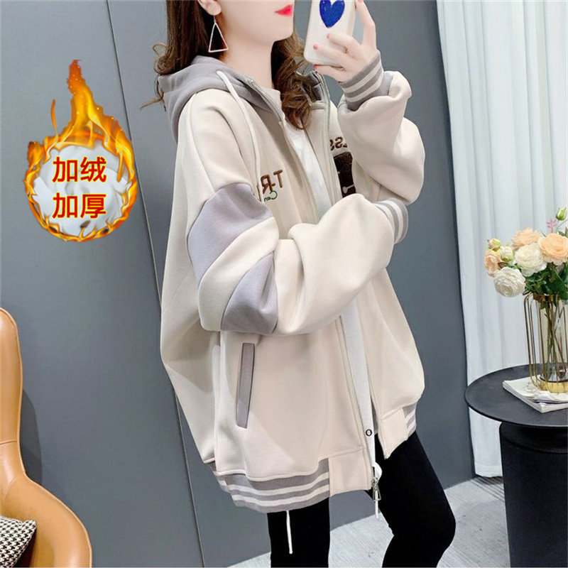 纯棉遮屁股卫衣开衫女士春秋冬中长新爆薄厚款加绒上衣棒球服外套