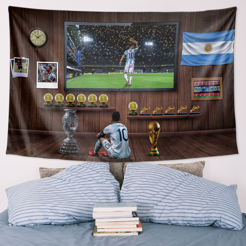 阿根廷世界杯梅西夺冠足球球星写真海报周边装饰背景墙布挂布挂毯