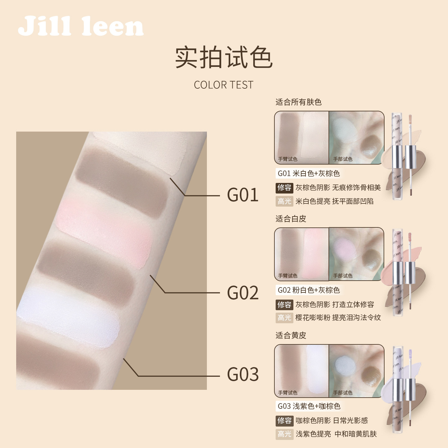 JILL LEEN 液体修容笔双头提亮高鼻影阴影遮瑕高光棒阴影立体侧影