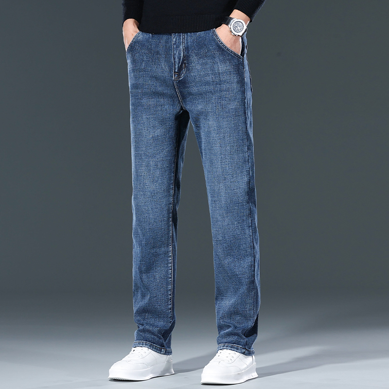 牛仔裤男士弹力男装直筒宽松休闲裤男秋冬季加厚上班耐磨工作裤子