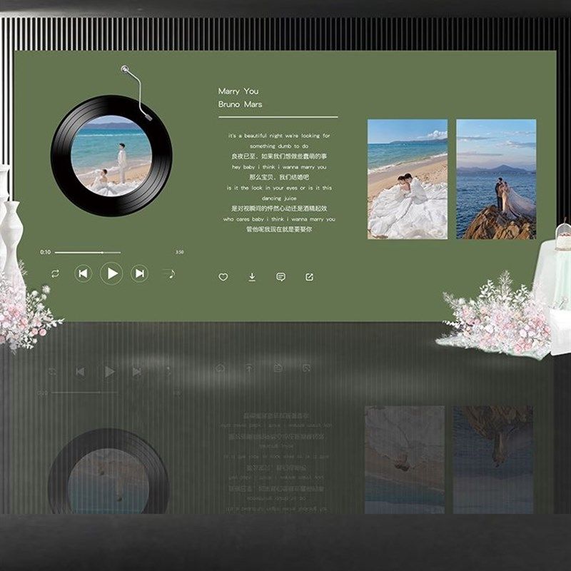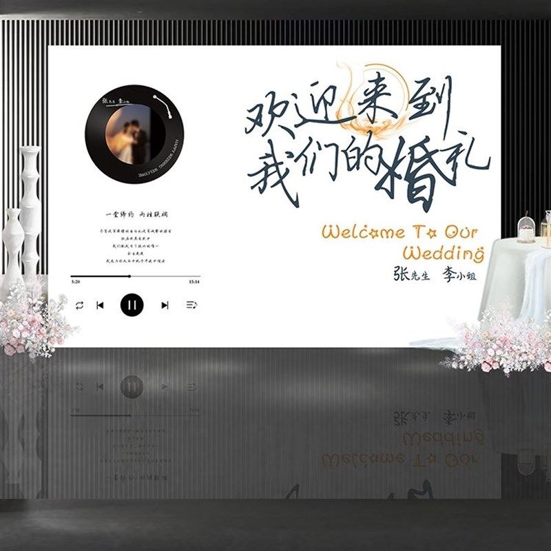 复古唱片机订婚布置装饰场景留声机结婚宴留影区迎宾牌kt板背景墙