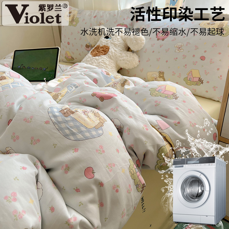 紫罗兰ins减龄可爱风40支全棉卡通印花四件套纯棉学生宿舍三件套