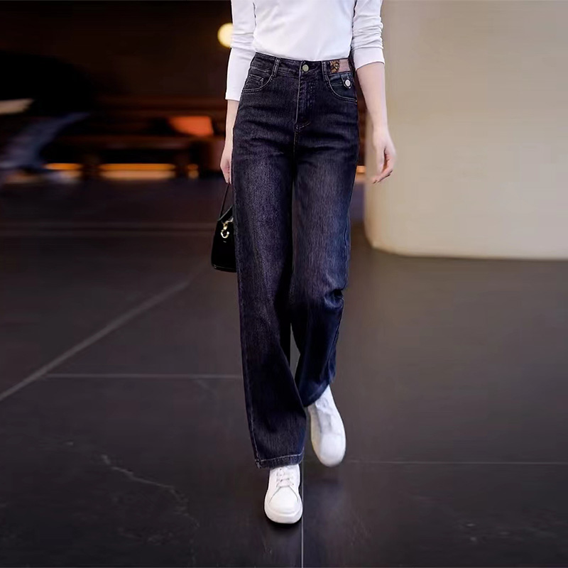 蓝色常规款秋季牛仔裤女2025高腰修身直筒裤洋气时尚长裤
