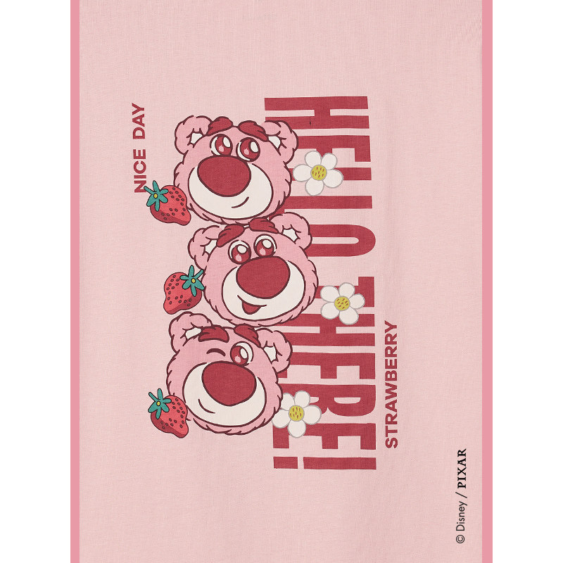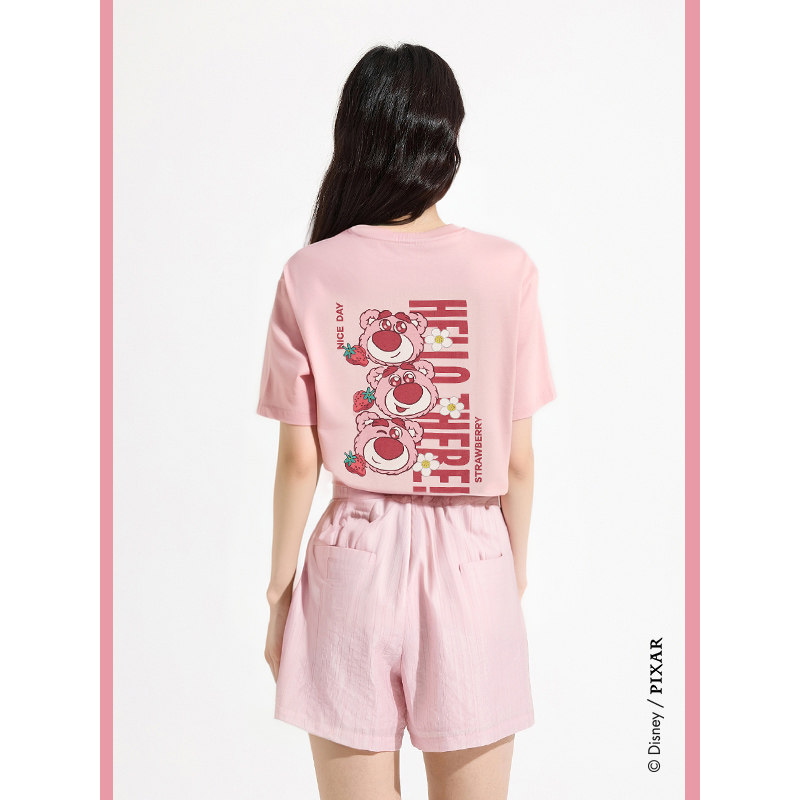 热风粉色短袖T恤上衣2025年夏季新款女士草莓熊后背大印花短T恤