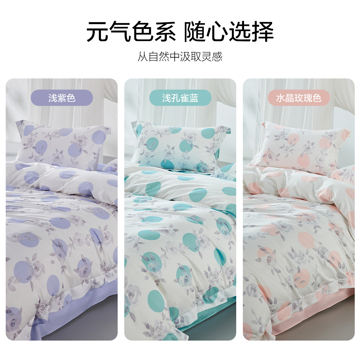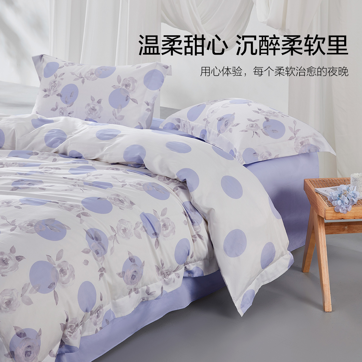 水星家纺 全棉四件套纯棉床单被套紫色蓝色四季通用床上用品套件