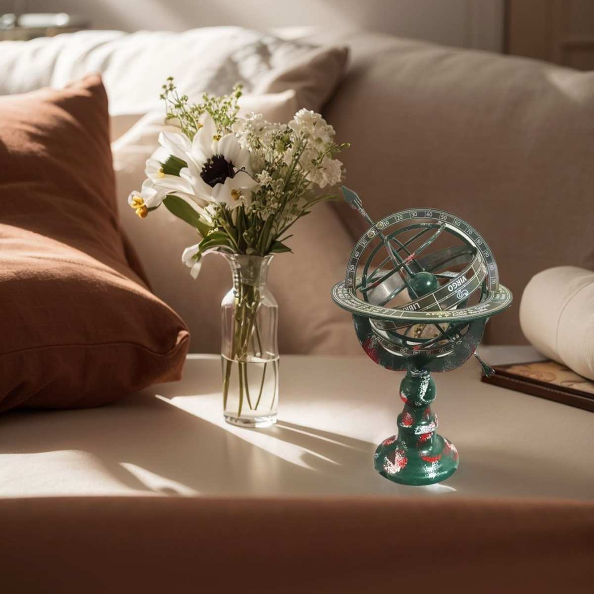 复古装饰航海仿青铜浑天仪带日晷箭头的黄铜浑天仪世界地球仪