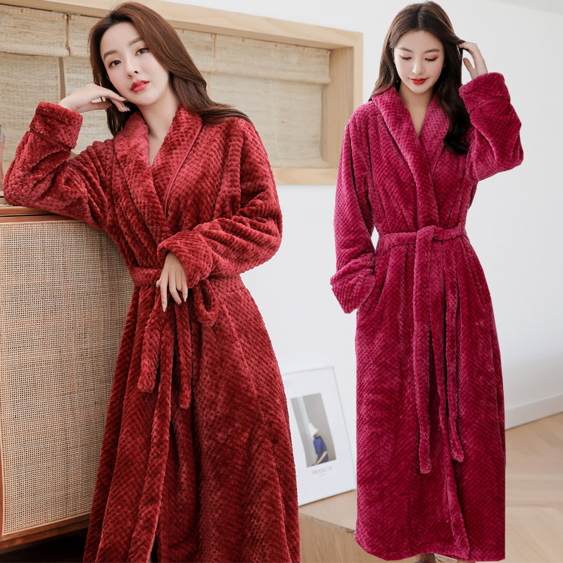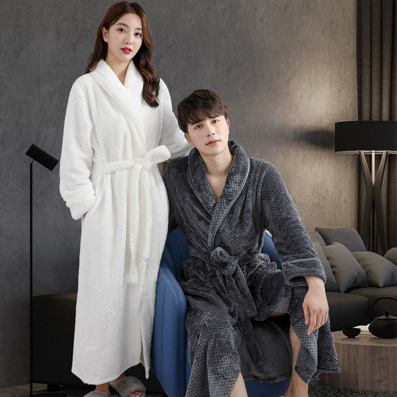 情侣睡袍女冬长款加厚双面加绒睡衣男士法兰绒浴袍冬天浴巾家居服