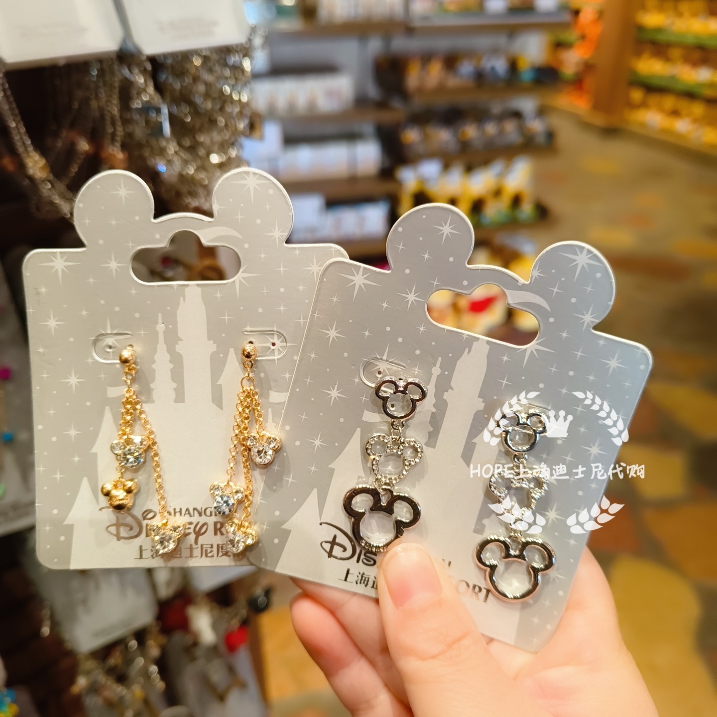 HOPE上海迪士尼代购 米奇头水晶耳钉美人鱼耳环国内