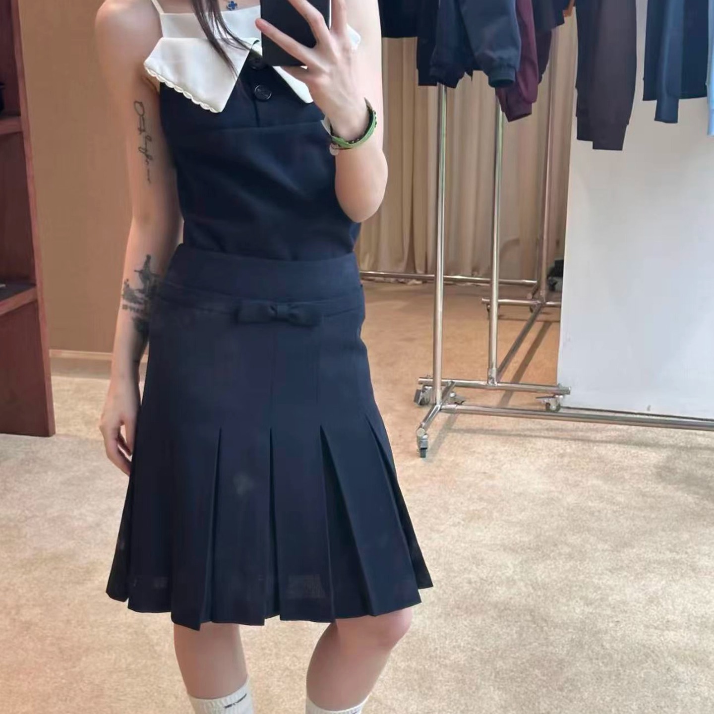 TE shushu学院风减龄miu系a字裙时尚气质通勤立体蝴蝶结装饰半裙