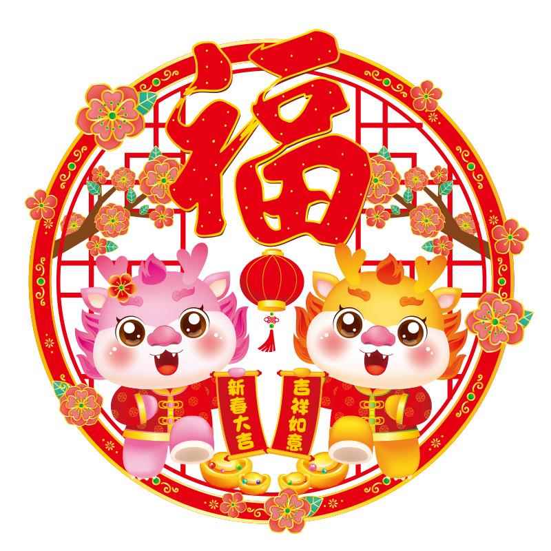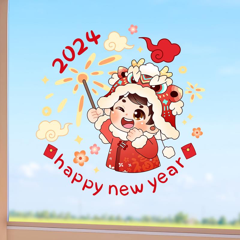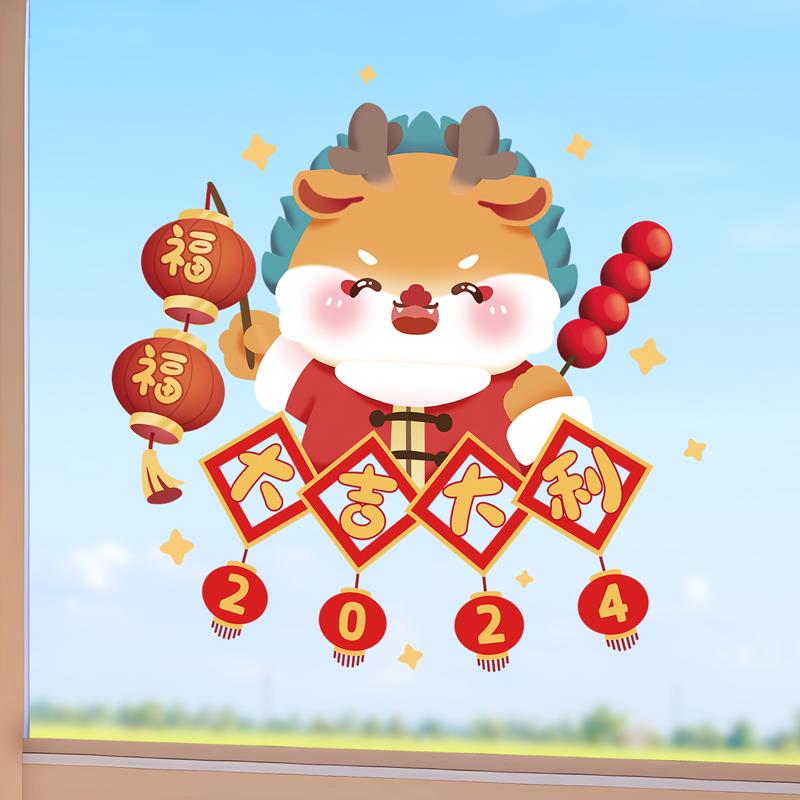 2024新年龙年装饰品静电贴春节过年布置窗花纸玻璃门贴纸年画窗贴
