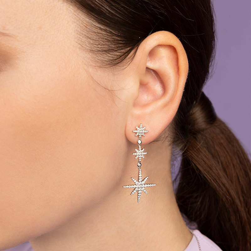 APM Monaco三流星六芒星耳环女生银高级耳钉女耳饰送人生日礼物