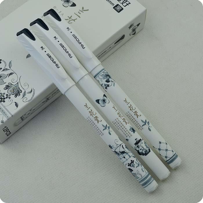 笔学生用古风中国风复古少女心青花瓷兰花0.5碳素针管水笔签字笔