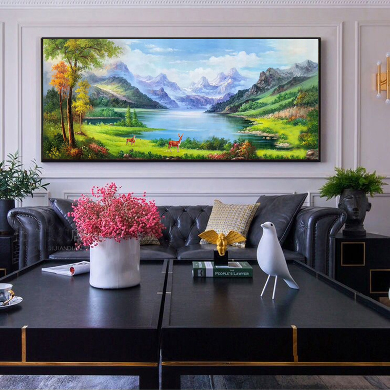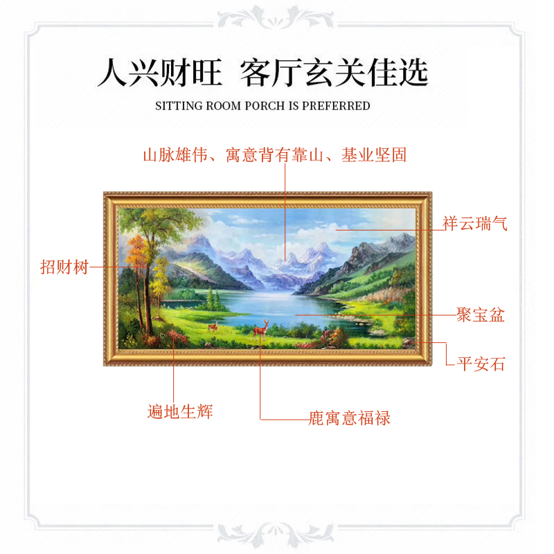 纯手绘欧式沙发背景墙装t饰画玄关壁画书房风水风景靠山客厅油画