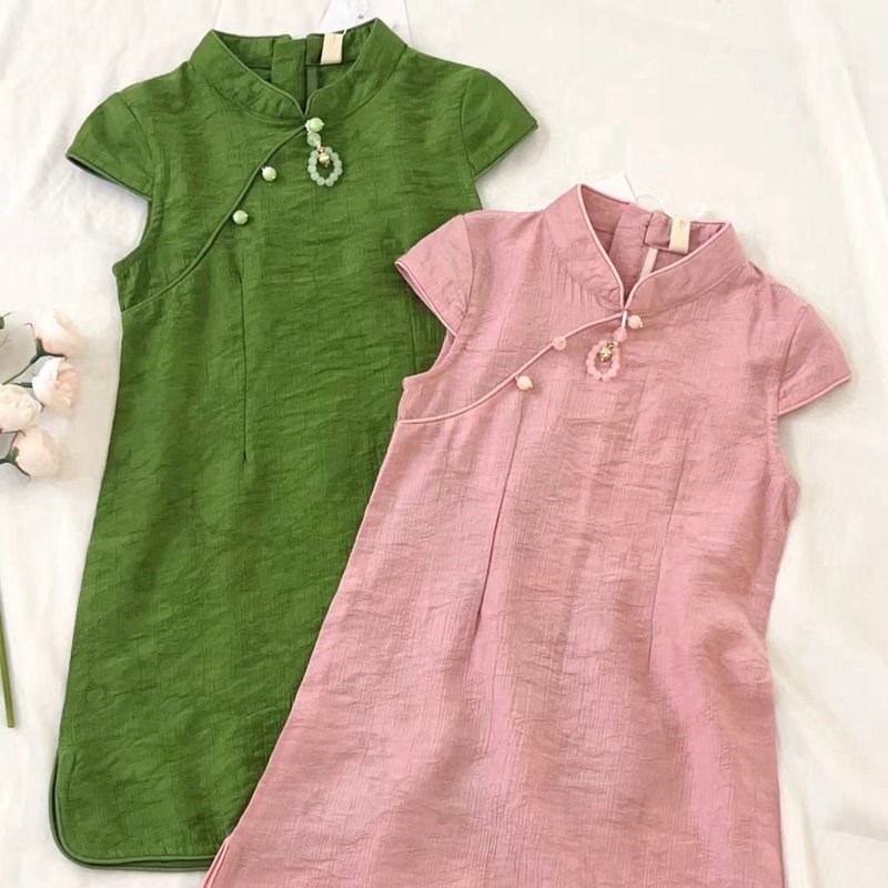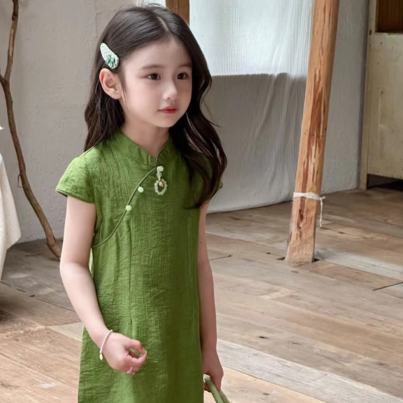 新中式女童旗袍夏季天丝麻改良复古民国儿童连衣裙洋气小孩中国风