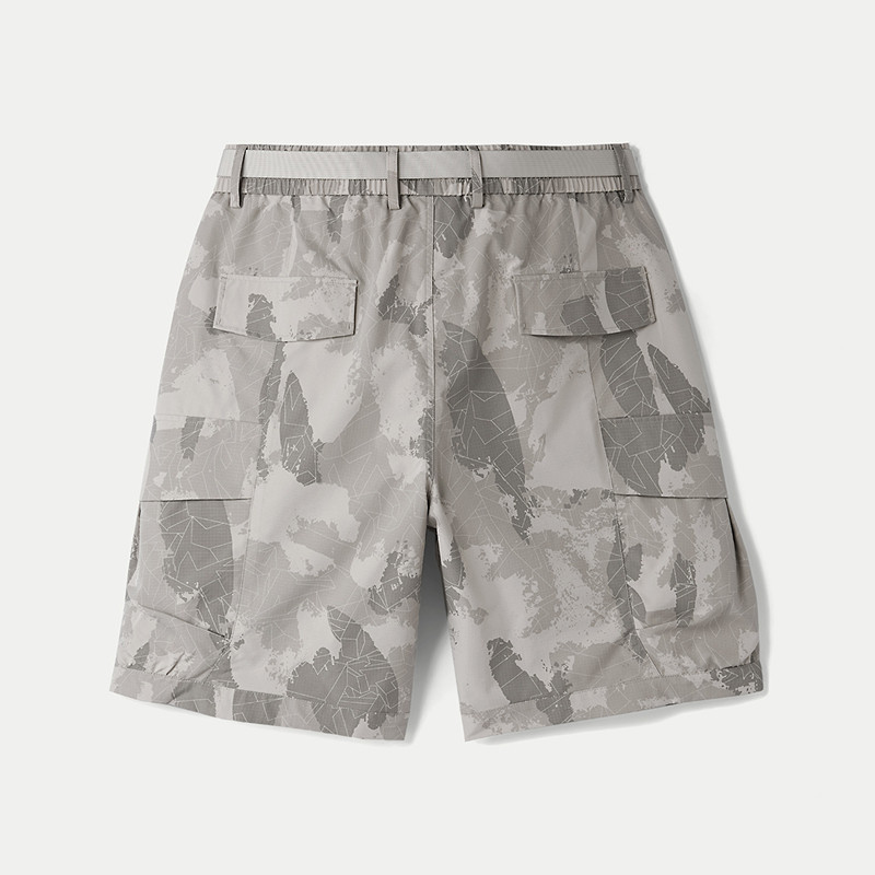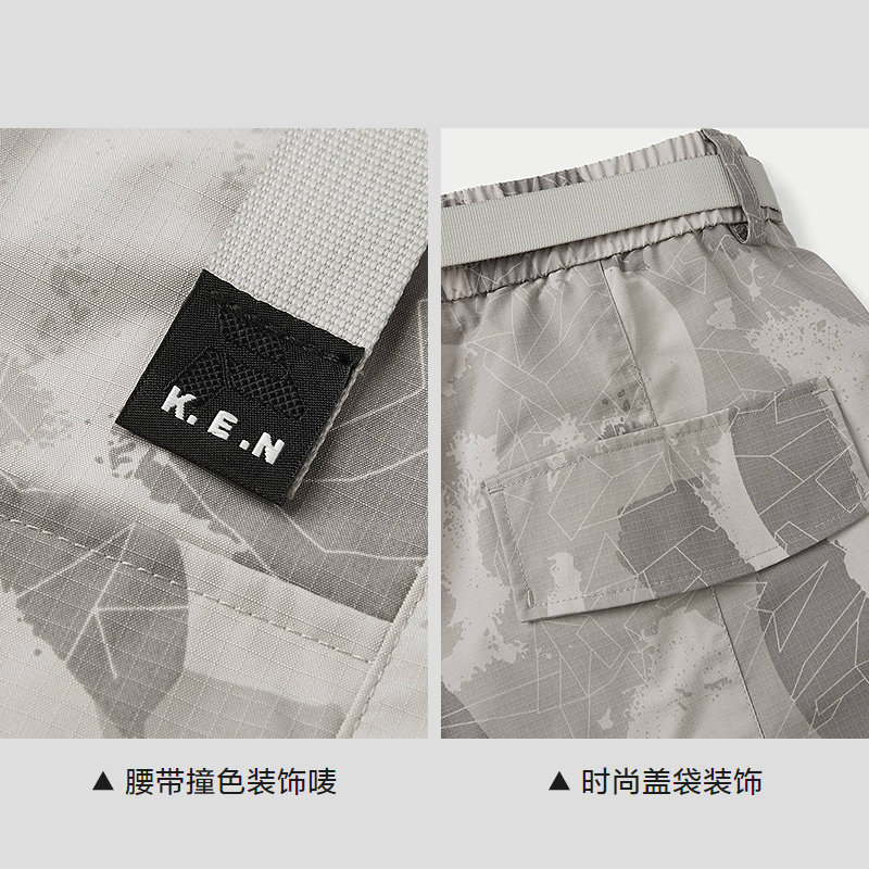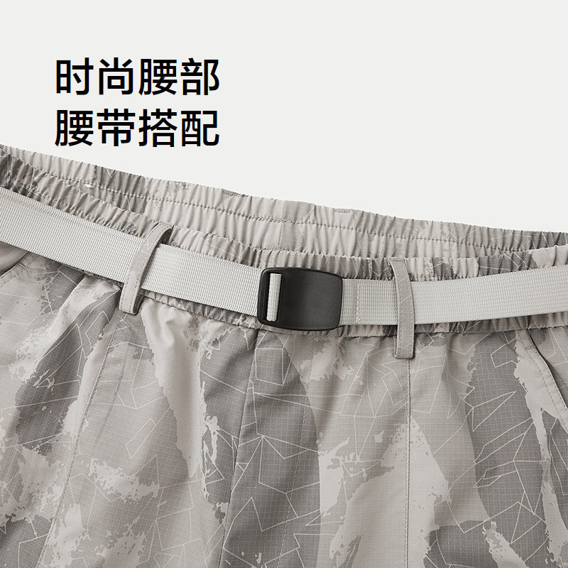 HLA/海澜之家时尚宽松休闲短裤春夏腰带装饰工装风花纹裤子男