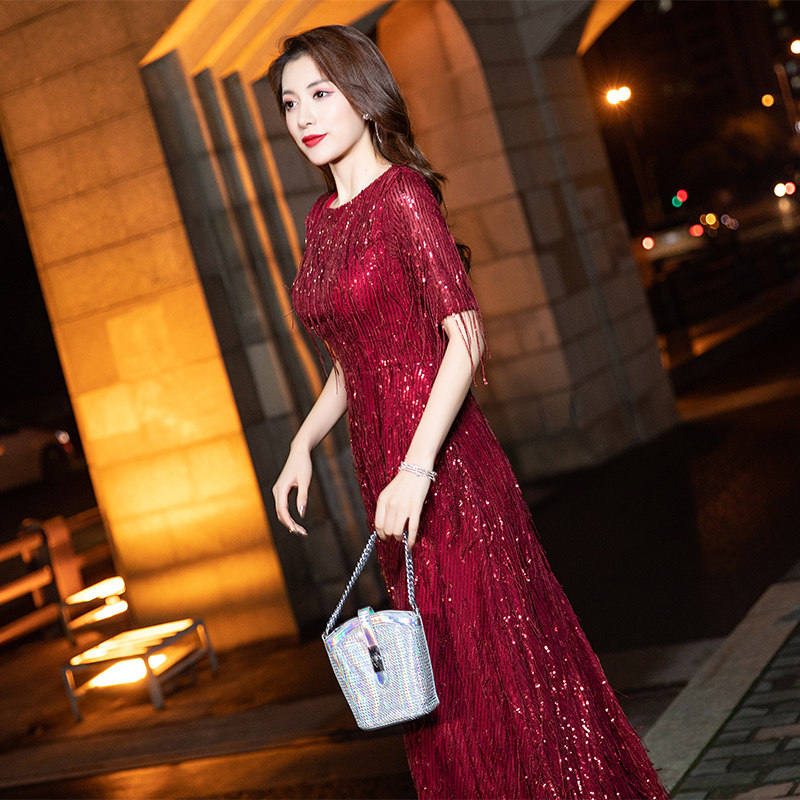 高端晚礼服裙女2025新款宴会高贵喜婆婆婚宴妈妈装亮片高档敬酒服