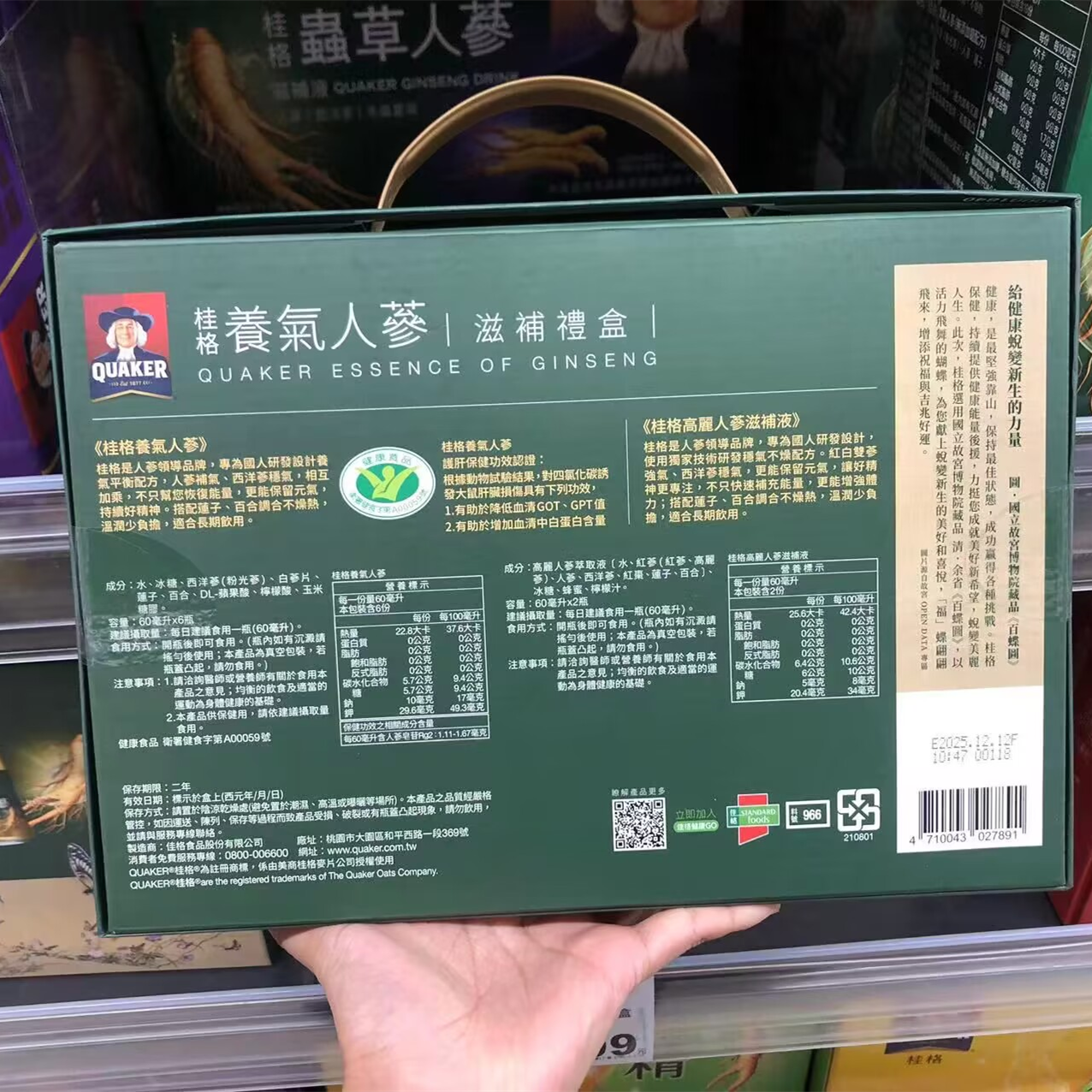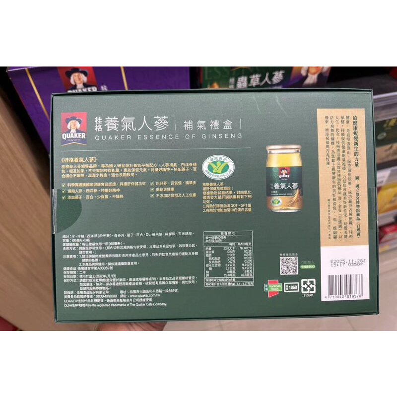 台湾原装 桂格养气人参8入好精神好体力营养补给 元气飞舞系列