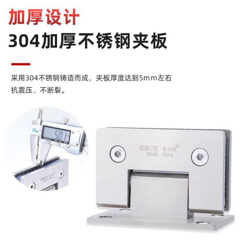 304不锈钢浴室夹90度无框玻璃门夹合页一体精铸180度淋浴房铰链