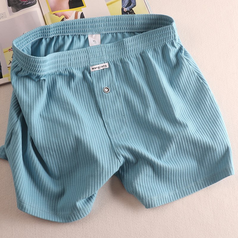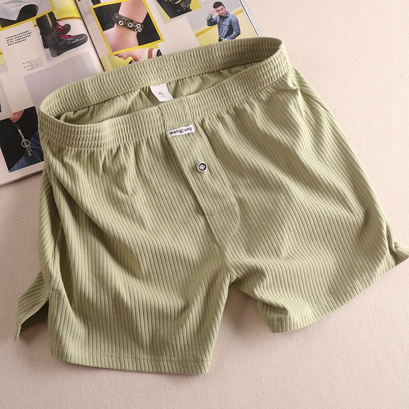 宽松舒适罗纹棉男士阿罗裤男生纯棉灯芯绒家居裤内裤平角短裤睡裤