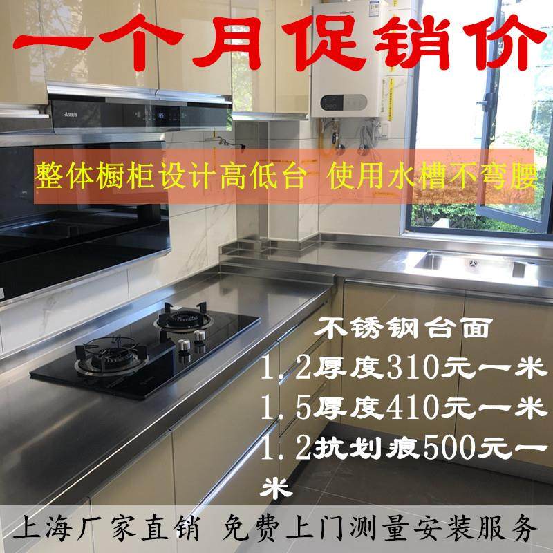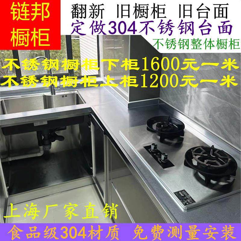 上海不锈钢整体橱柜定做家用304不锈钢台面翻新整体整体橱柜瓦斯