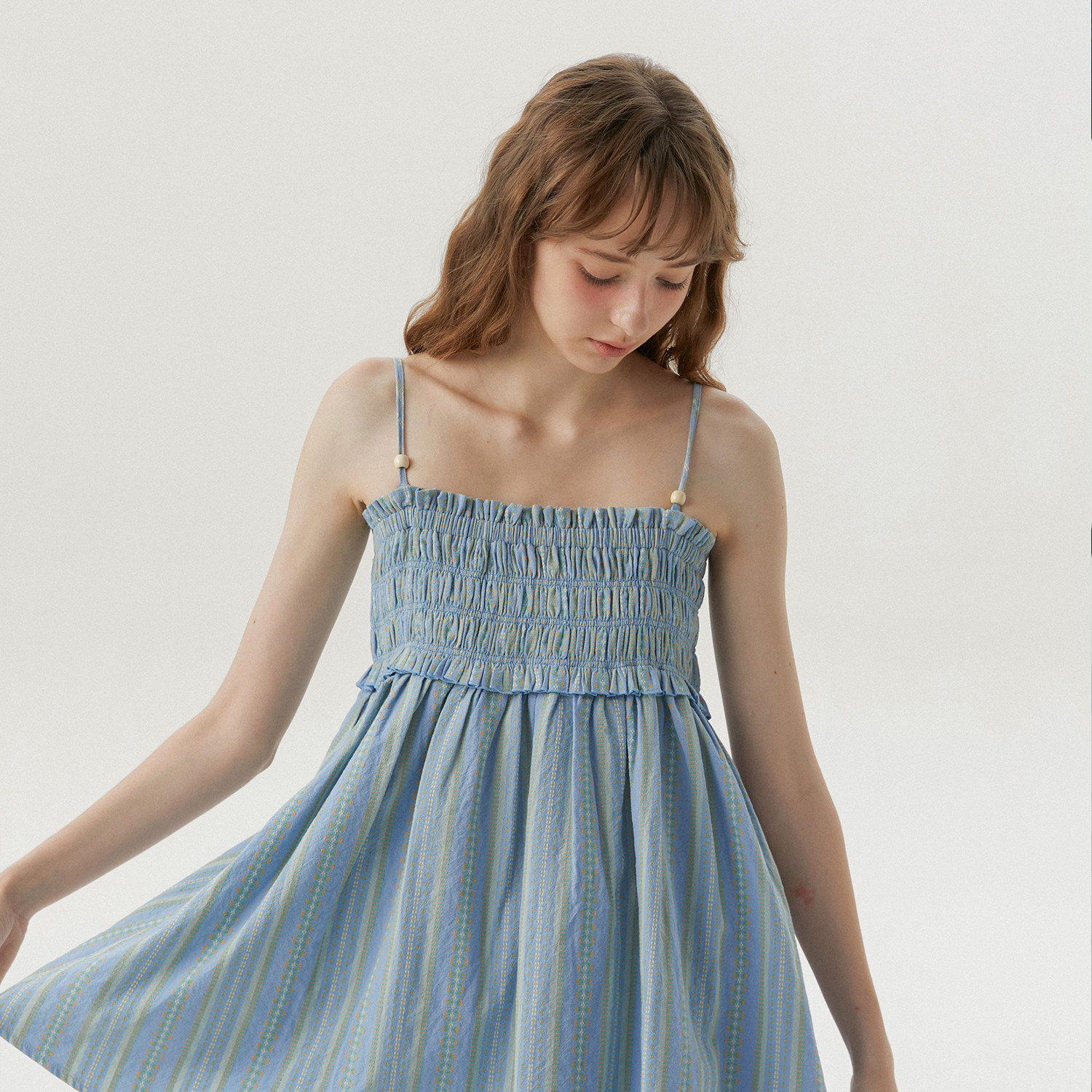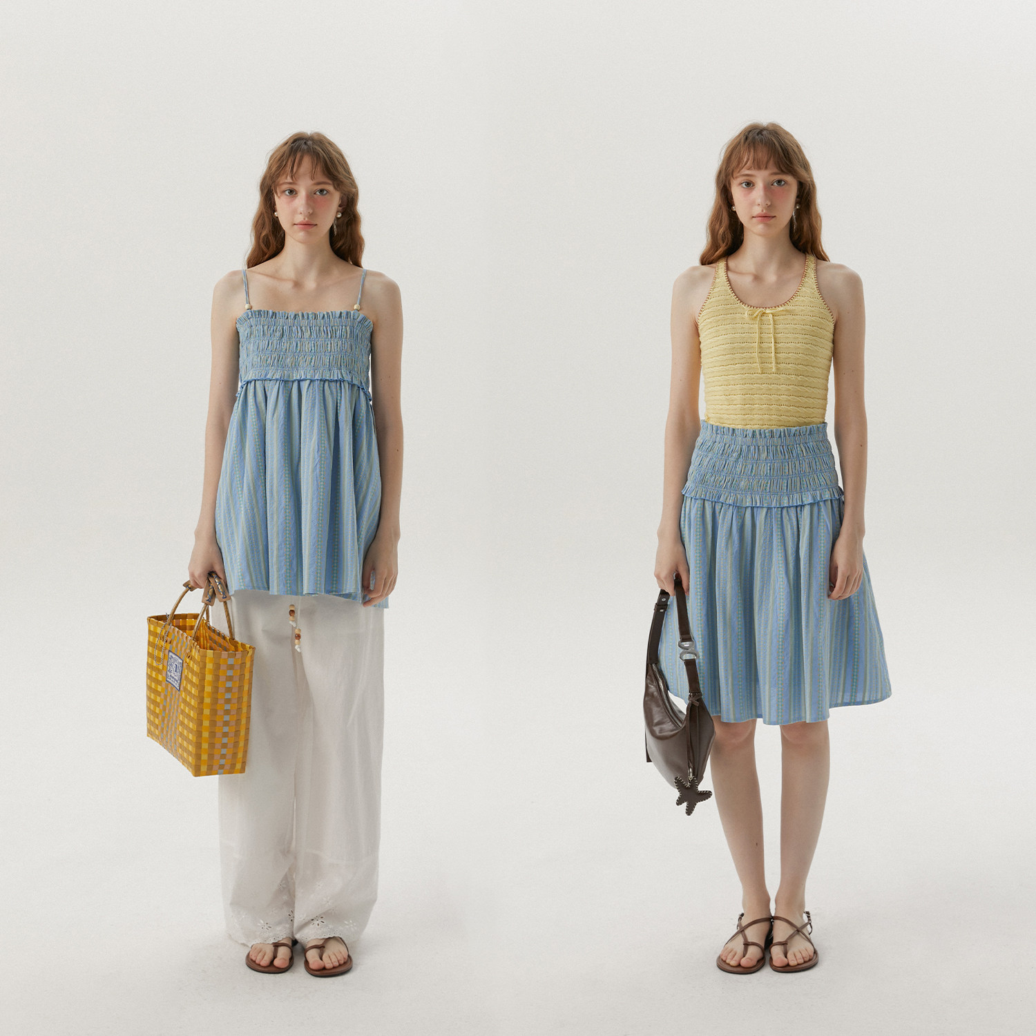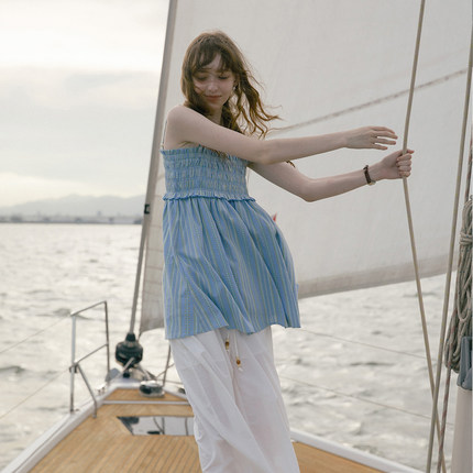条纹吊带两穿背心半身裙