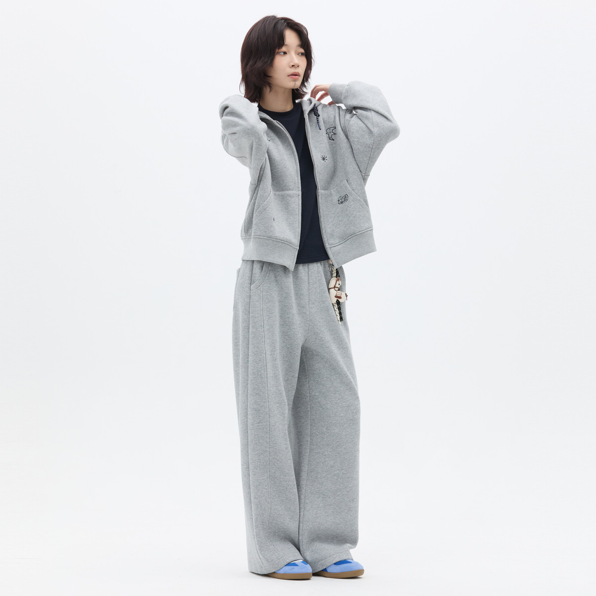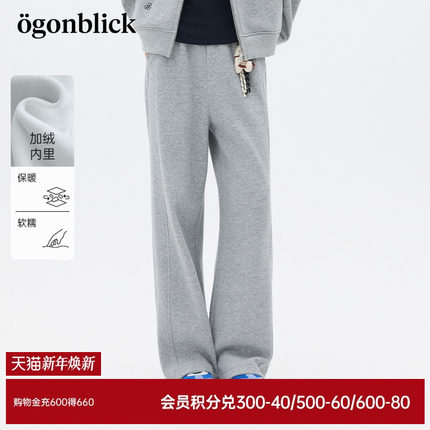 商场同款北欧时刻小马挂饰运动休闲直筒裤女秋冬新款小个子阔腿裤