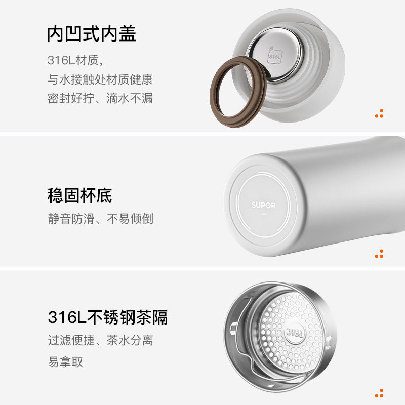 苏泊尔高档保温杯水杯子男士女316L不锈钢便携商务定制泡茶大容量