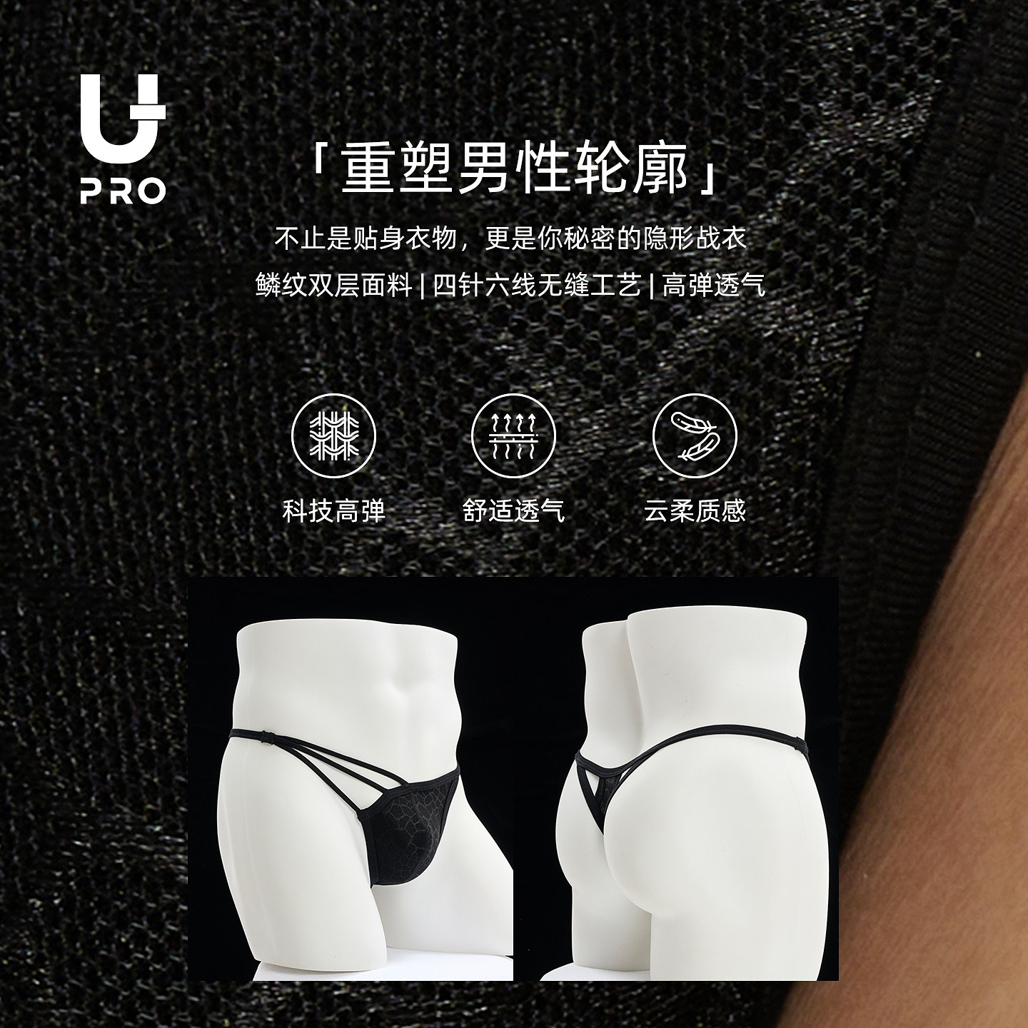UPRO柚璞男士不对称蕾丝比基尼三角内裤高开叉高弹(15天内发)