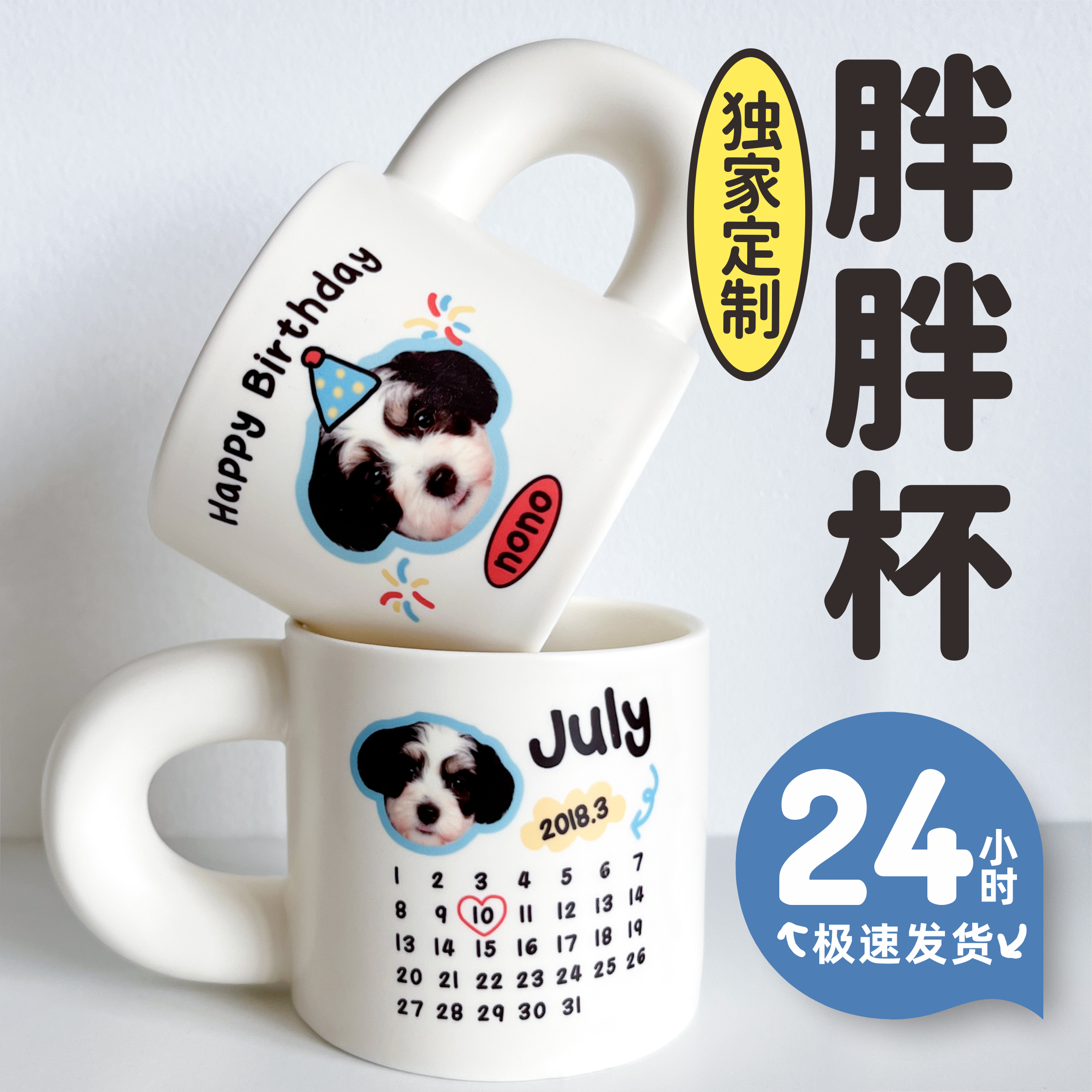 马克杯定制胖胖咖啡杯宠物猫狗结婚照片生日节日公司logo纪念礼物